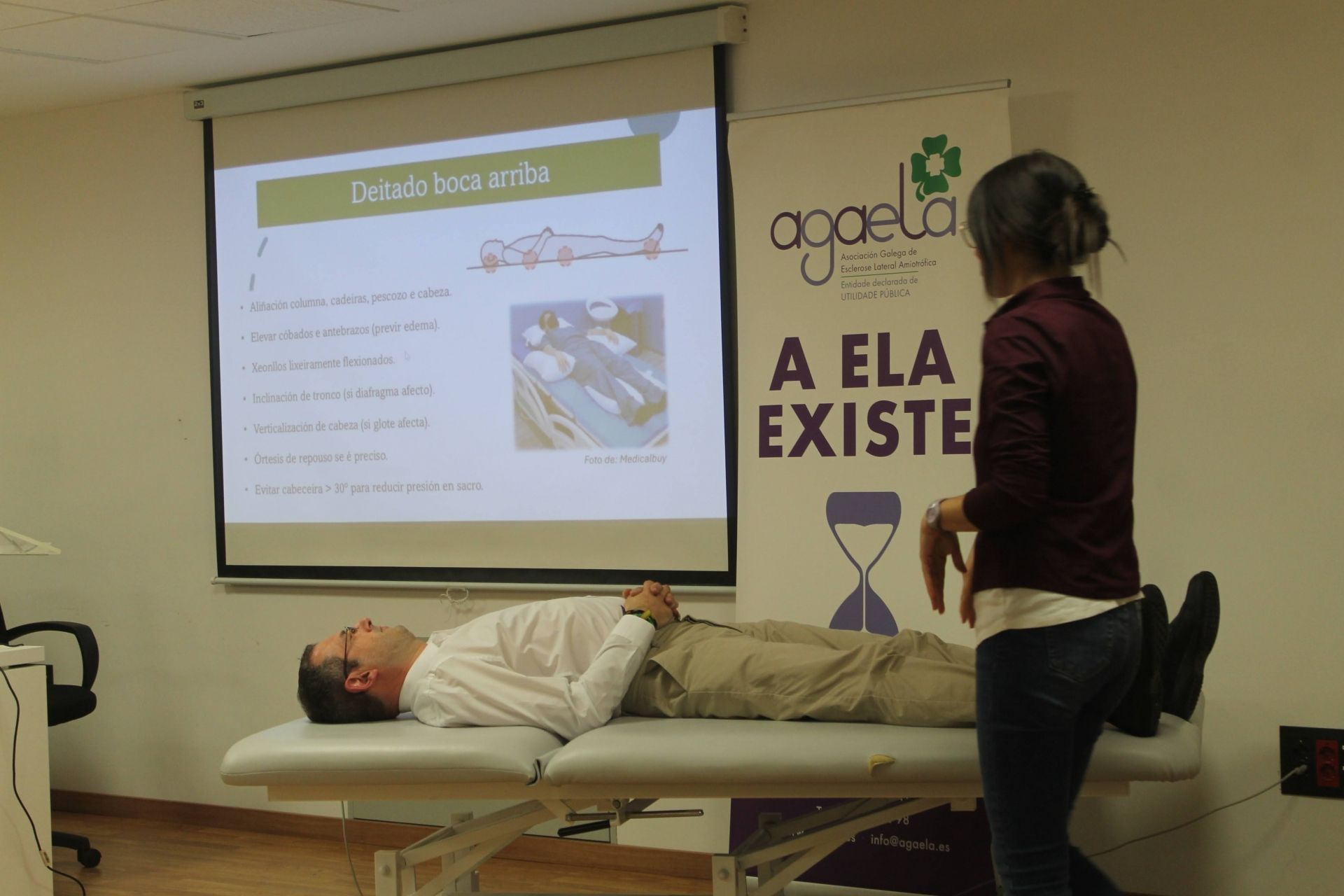 Un dos piares fundamentais da fisioterapia na ELA é a educación sanitaria. A formación en mobilizacións seguras, cambios posturais, prevención de úlceras por presión e manexo da fatiga resulta clave para favorecer a autonomía e minimizar riscos.